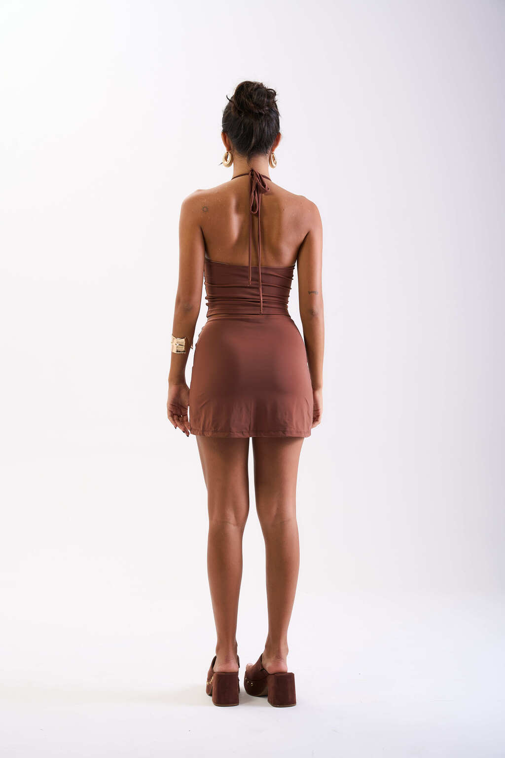 Top halter com decote e recorte frontal, finalizado com argola metálica que destaca o design moderno e ousado da peça <3
