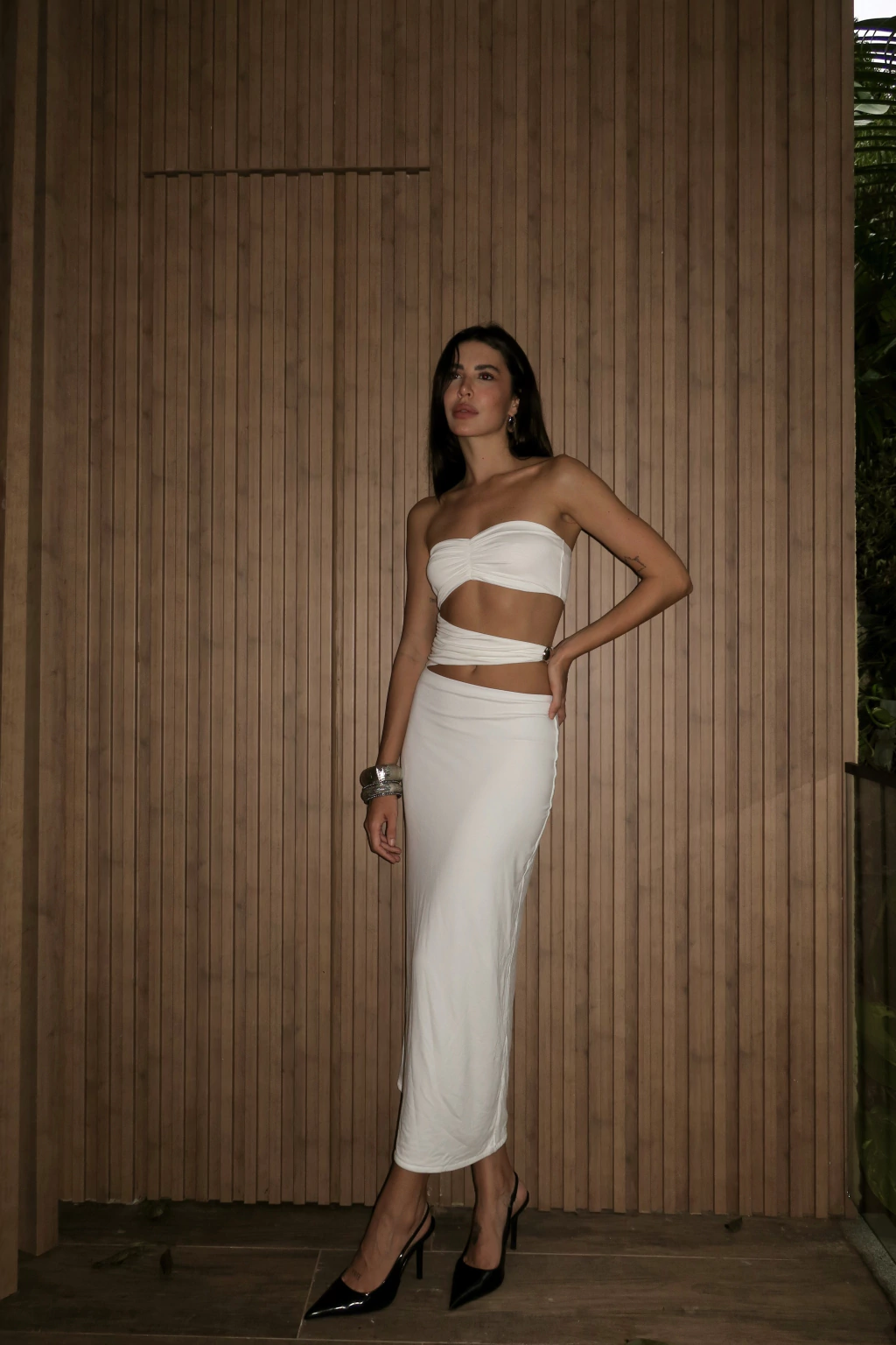 Os recortes estratégicos adicionam um toque moderno e sensual, enquanto a ferragem lateral confere sofisticação e um charme exclusivo à peça. Ideal para eventos especiais ou para quem deseja um look marcante e cheio de personalidade.